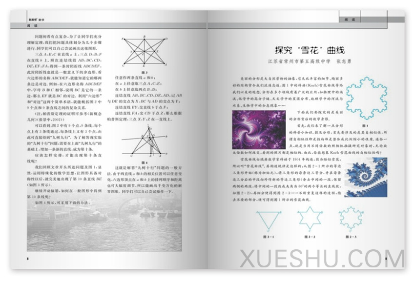 探究“雪花”曲线,美丽的分形是大自然景物的抽象,它无比丰富的细节、绚丽多彩的结构常令我们流连忘返,图1中的科赫(Koch)雪花曲线等给我们以美的遐想,分形在多个领域有着广泛的应用,如物理中的湍流、化学中的高分子链、天文学中的星团分布、地理学中的河流与水系、生物学中的全息现象……首先,我们来了解一点分形的科普小知识,提及分形,首先要涉及的是其自相似性,所谓自相似性即是指局部是整体成比例缩小的性质。